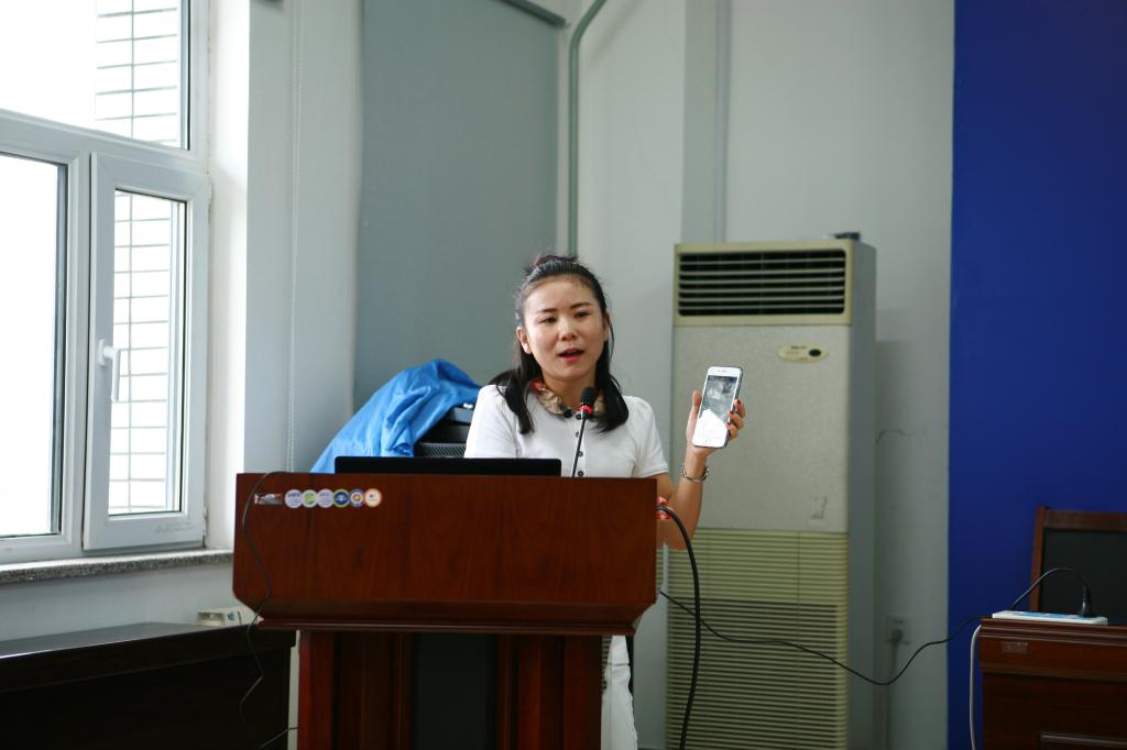 英语教研室张静波、李宏洋两位老师分别向大家介绍了“草料二维码、有图助手、微弹幕、问卷星”四种以互联网与移动通信设备有机结合的教学技能。两位老师和大家分享了这四种教学技能的获取方式、使用方法、教学效果以及利弊。