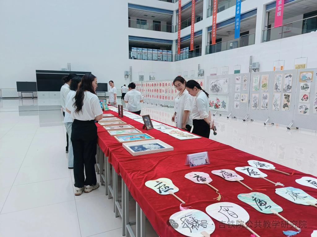 接下来,党员教师们移步至学校“双子楼”3000平米展览大厅进行吉林铁道职业技术大学“廉洁动车”主题文化作品展参观。翰墨飘香、诗画传情,教师们先后参观了漆扇书法作品“百扇廉章”,非遗技艺传统扎染技法制作的“素蓝廉趣”,以及“廉”为主题的剪纸、鱼皮画等三百余件作品。