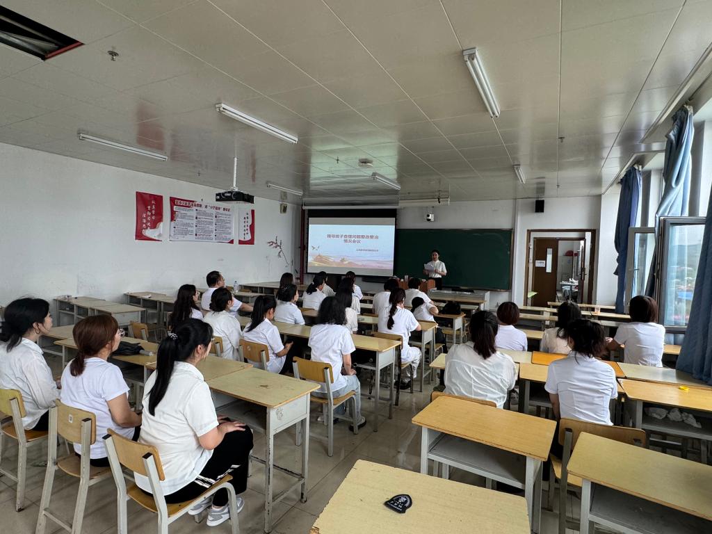 参观完作品展之后,大家进行了感悟分享,之后于藕副书记向大家汇报了领导班子以及党总支查摆问题整治情况。最后,于藕副书记还结合“廉”与师风师德建设给党员教师们上了一堂丰富生动的党课。