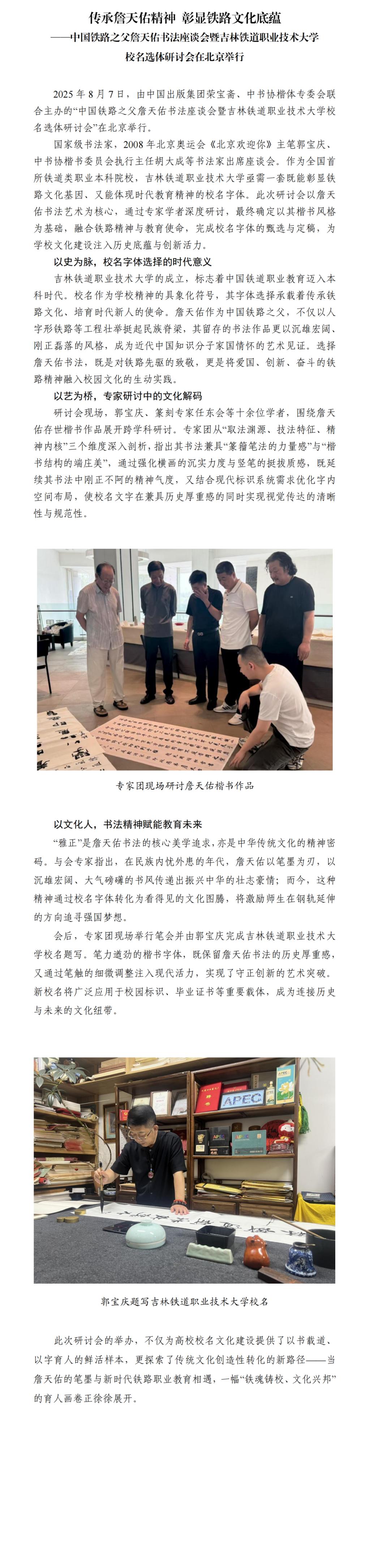 中国铁路之父詹天佑书法座谈会暨吉林铁道职业技术大学校名选体研讨会在京举行